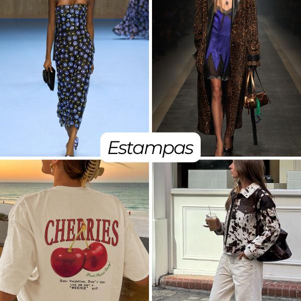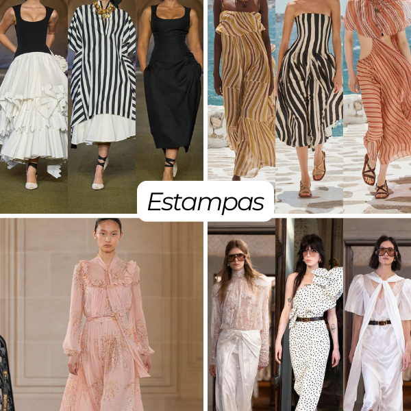 Estampas poá, florais miúdos, listras e animal prints repaginados dividem espaço com recortes delicados, transparências estratégicas e bordados artesanais, criando peças que transitam do casual ao sofisticado com naturalidade.